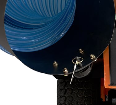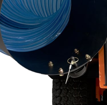The transport lock safely secures the boom arm and hose when not in use; the nylon bearing delivers smooth movement. A transport pin locks the nozzle to the loader to help protect the hose during transportation.
