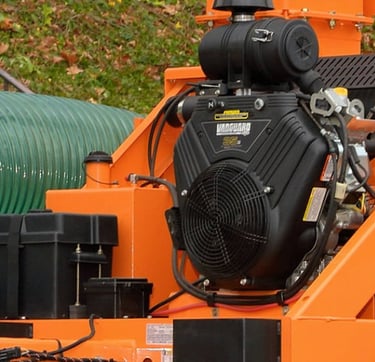 Within the unit’s 10.5″-wide housing is a welded-steel impeller with 1/2″-thick steel blades. Dynamically balanced for reduced vibration, longer life, and less stress on the engine, these loaders boast an effective, high-output (35BV = up to 6,781 CFM; 37CH = up to 6,909 CFM; 49KBD = up to 7,318 CFM), debris-reducing design.
