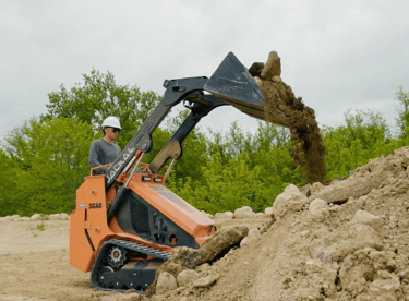 SCAG mini skid steers use a stand-on operator platform, allowing the operator to easily step on and off the machine while maintaining excellent visibility of the job site. The narrow design and low center of gravity help the machine stay stable while working in tight spaces such as backyards, narrow gates, and residential job sites.