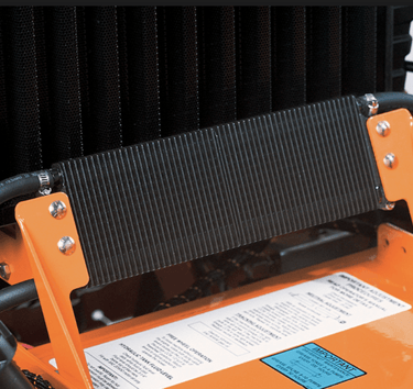 Dual Hydro-Gear pumps (16 cc) and Parker wheel motors (18 ci) deliver dependable power. Pump shock valves ensure reliability and long life. Cooling fans help maintain safe operating temperatures.