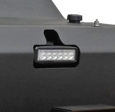Standard front and rear LED flood lights allow for all hours of the day operation. Each LED light bar is equipped with 6 powerful LEDs emitting 1400 lumens of light supplying a bright, sharp, and clear path forward and reverse.
