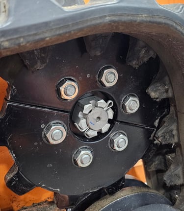Unique split cog design allows for easy track installation. No more hassle trying to line up all six bolt holes of overdrive lugs with a single cog design. Simply place one of the split cogs over three drive lugs, rotate the drive motor 180 degrees, and place the final split cog over the remaining three drive lugs.