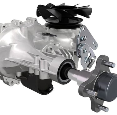 Dual ZT-2800 transaxles utilize all-metal internal gears for long life and deliver smooth, infinitely variable speed and bi-directional control. Power comes from a 10 cc variable-displacement, seven-piston pump and a 16 cc fixed-displacement, seven-piston motor in each transaxle. Cooling fans help keep operating temperatures lower.